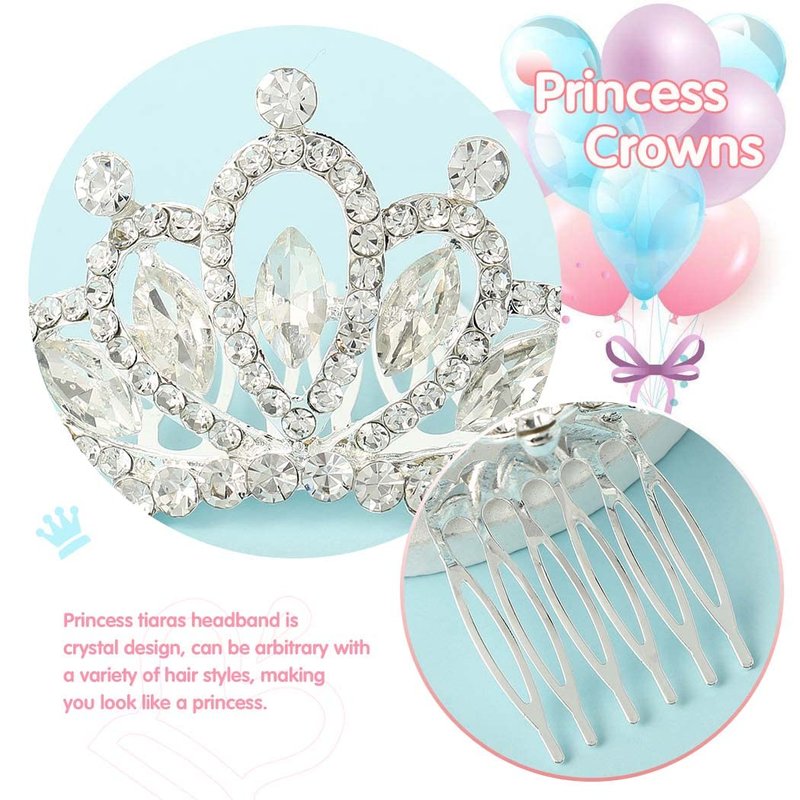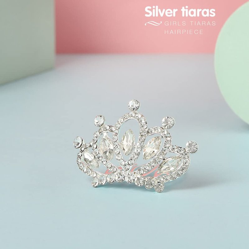 Yean Mini Princess Crown Comb Silver Crystal Tiara Hair Comb Rhinestone Hair Accessories Decorations for Women and Girls (Silver)