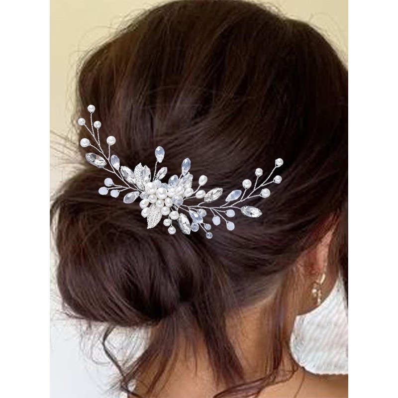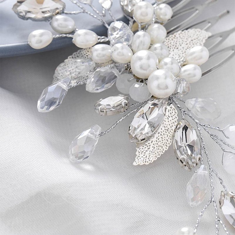 Yean Pearl Bride Wedding Hair Comb Sliver Crystal Bridal Hair Piece Leaf Hair Accessories for Women and Girls