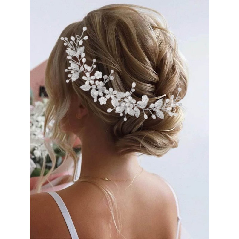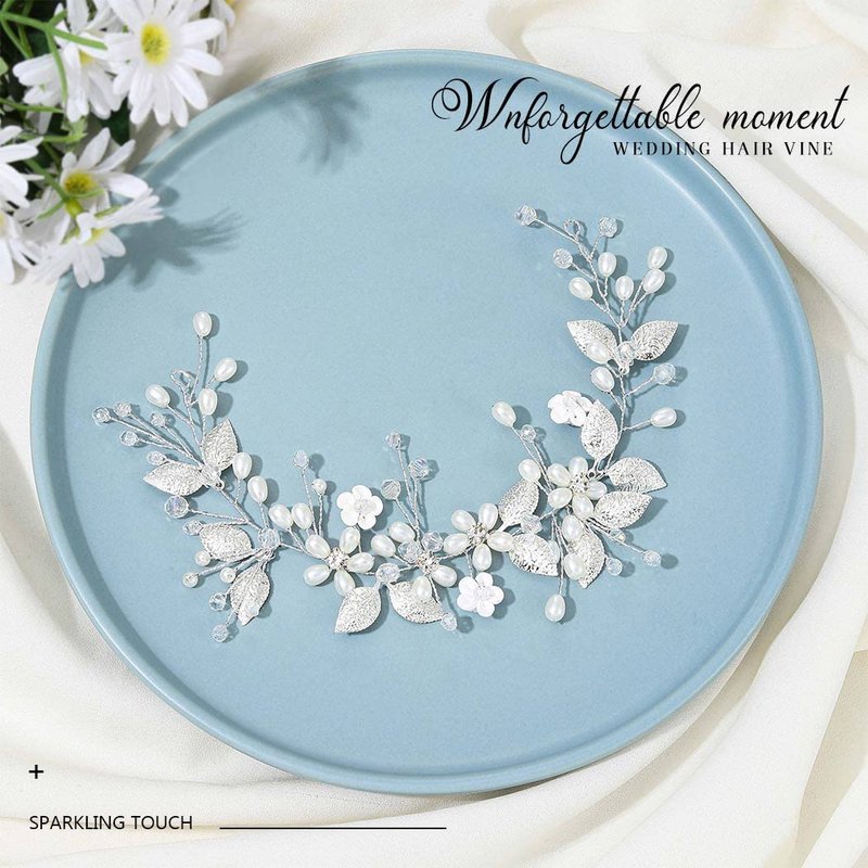 Yean Pearl Wedding headband Silver Flower Bridal Hair Accessories Leaf Hair Piece for Women and Girls