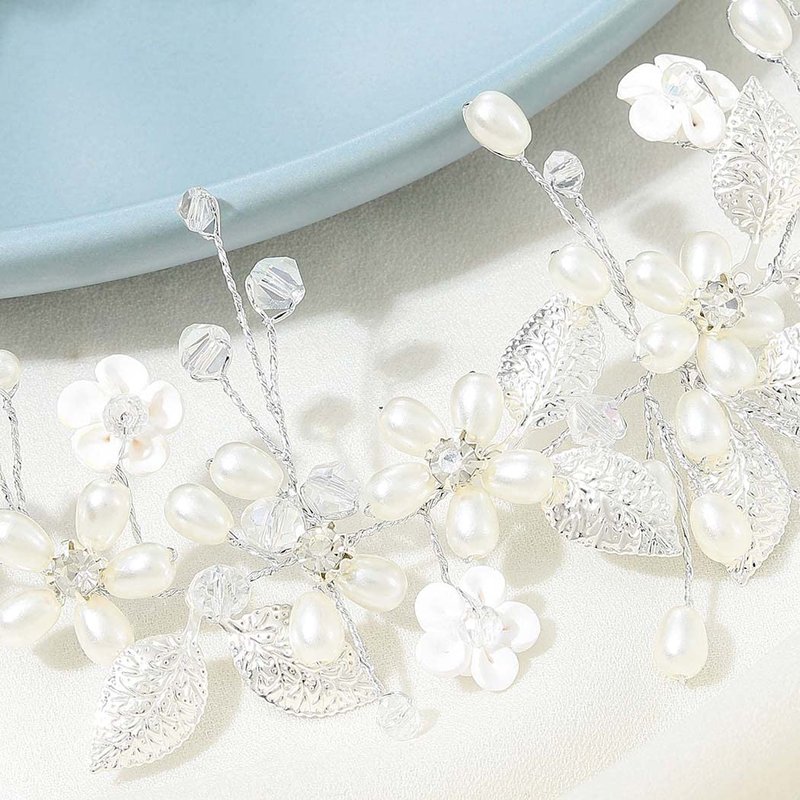 - Bride wedding hair accessories are made of crystal,pearls flower and alloy wire.Well crafted,quality assurance.