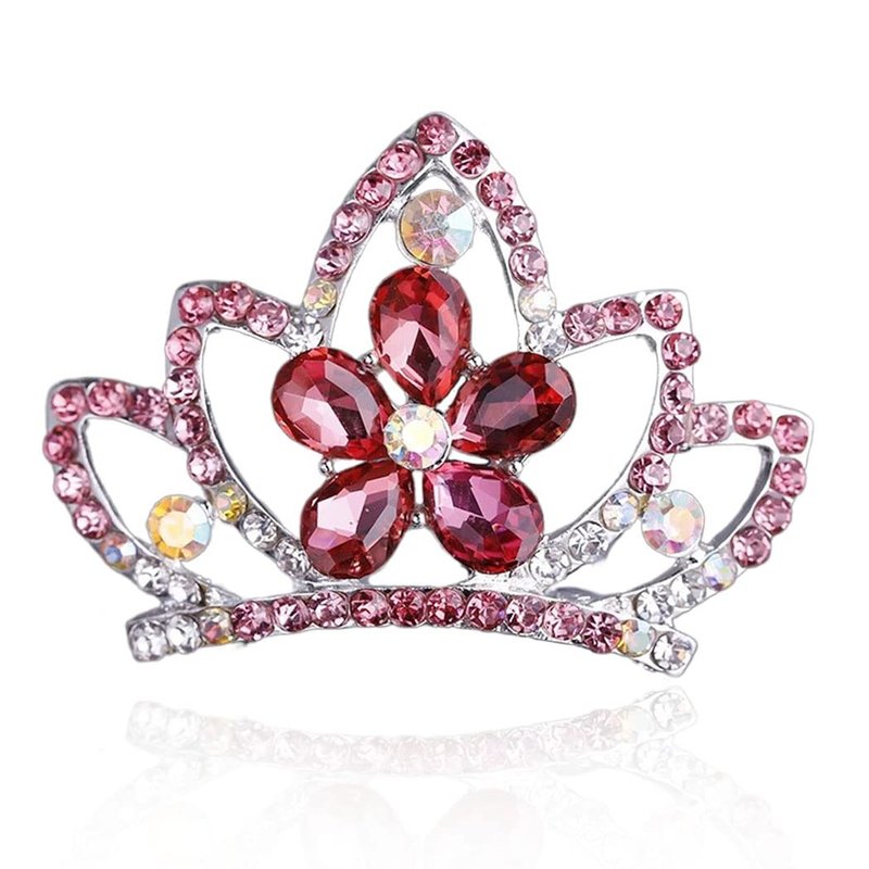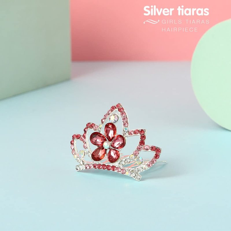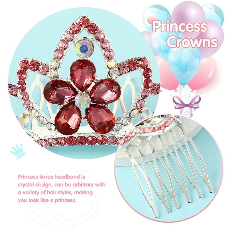 Yean Princess Crown Comb Mini Crystal Tiara Comb Rhinestone Silver Tiara Flower Hair Comb for Birthday Party and Girls (Red)