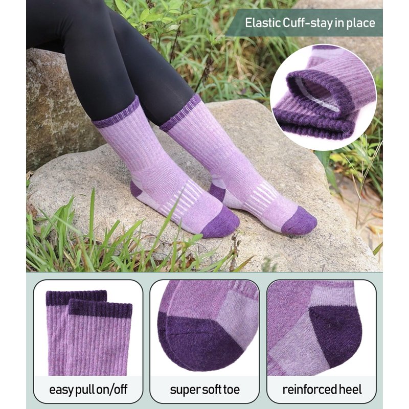 - PROTECTION for FEET --These womens wool hiking crew socks have stretchy cuff and arch support ,which can improve the blood circulation and keep socks fit snugly. They are perfect socks for hiking , climbing , skiing , camping ,running , walking or other outdoor activities.