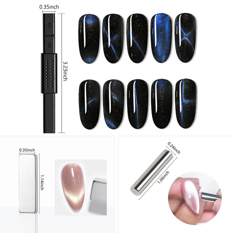 - 【Easy to Use 】: Apply cat eye gel polish,and then place the magnet on your nails for 10-15 seconds to get a cat eye effect (please keep the magnet side facing your nails, the closer you can, but do not touch the nail surface), Then use the UV light for 2 minutes or LED light for 60 seconds, all all , you will get a easy cat eye nail art designs.