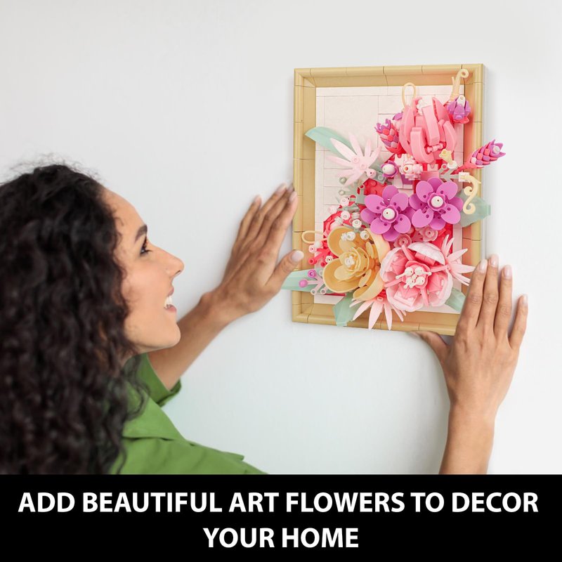 - Ideas Flower Picture Frame: This flower picture frame building set features pink flowers and is inspired by real flowers and plants that never wilt or fade. Each flower has been carefully designed and combined with a picture frame, it will show you a stunning 3D building block art flower picture frame.