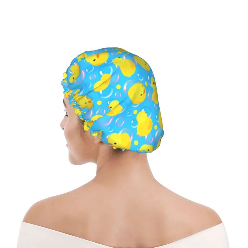 Yellow Rubber Ducks Shower Cap For Women Adjustable Double Waterproof Layers Bathing Shower Hat Hair Protection Reusable Ladies Spa Salon Shower Hat
