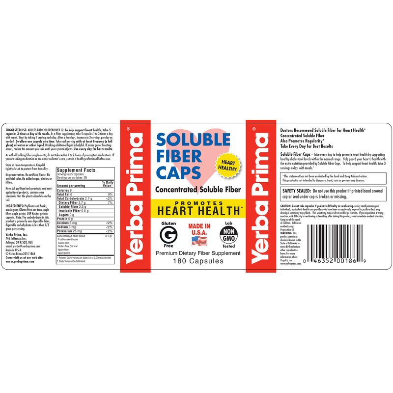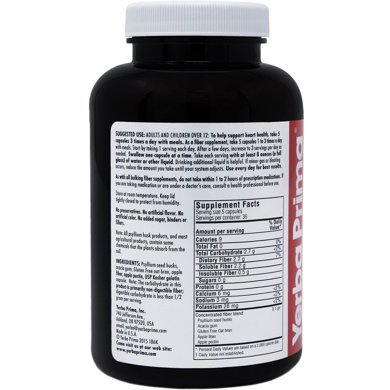Yerba Prima Soluble Fiber Formula Capsules, 180 Count - Premium Dietary Fiber Supplement, Natural, Concentrated Soluble Fiber, Gluten Free, Non-GMO, Made in USA