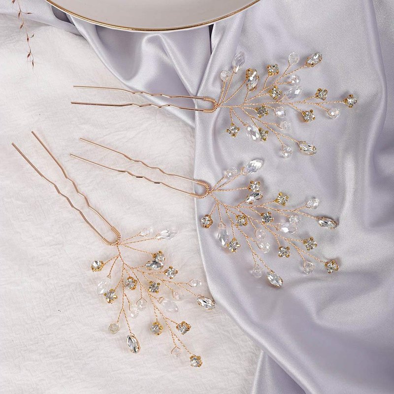 YERTTER 3 Pcs Wedding Hair Pins Decorative Rhinestones Crystal Vine Bridal Bun Clip Accessories for Brides and Bridesmaids (Gold)