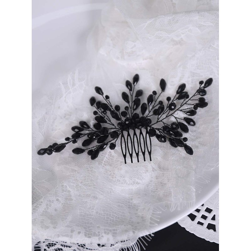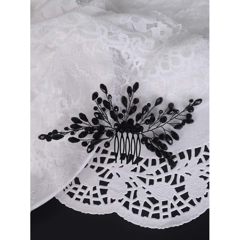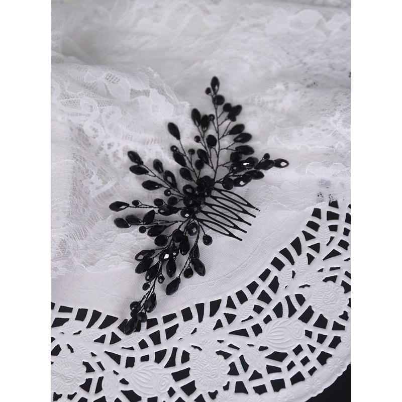 YERTTER Black Crystal Hair Comb Vintage Beaded Bridal Headpiece for Women's Wedding and Special Occasions