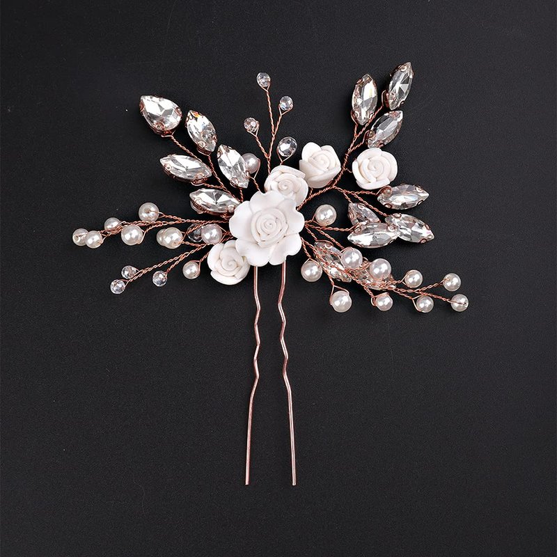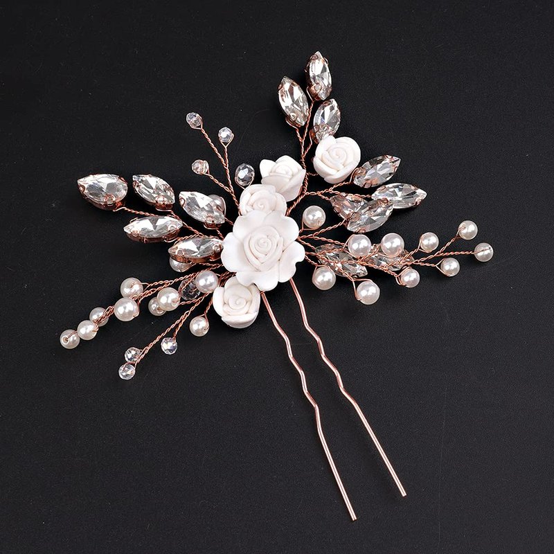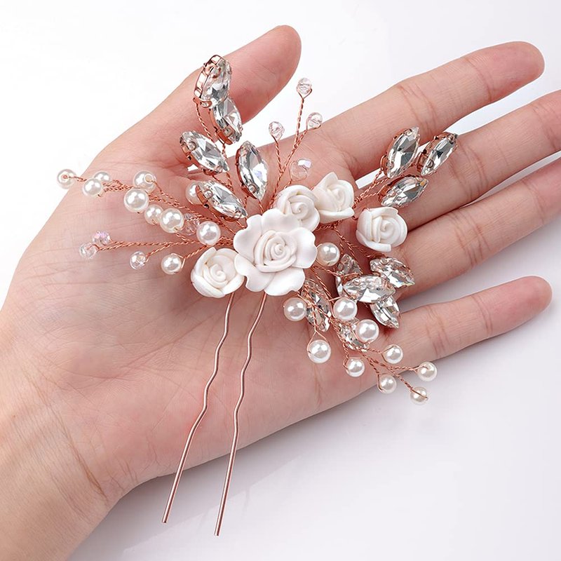 YERTTER Floral Wedding Hair Pins for Brides and Bridesmaids Flower Rose Bridal Clips Boho Crystal Rhinestones Decorative Hair Pieces for Women Girls (Rose Gold)