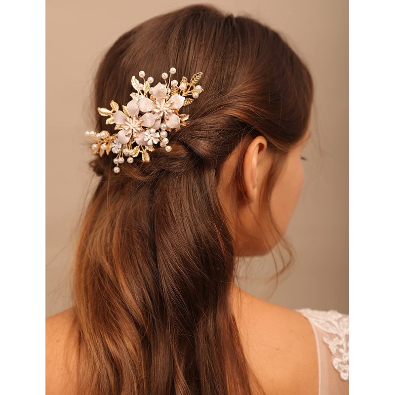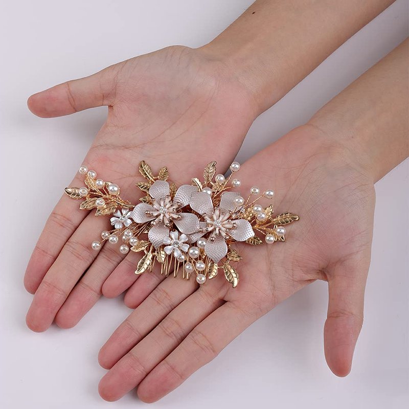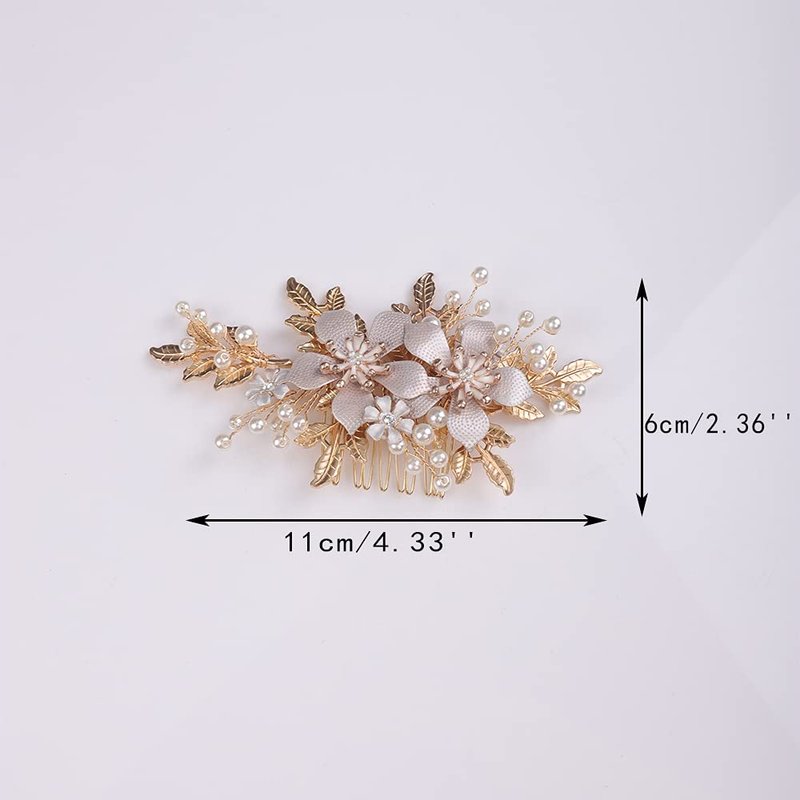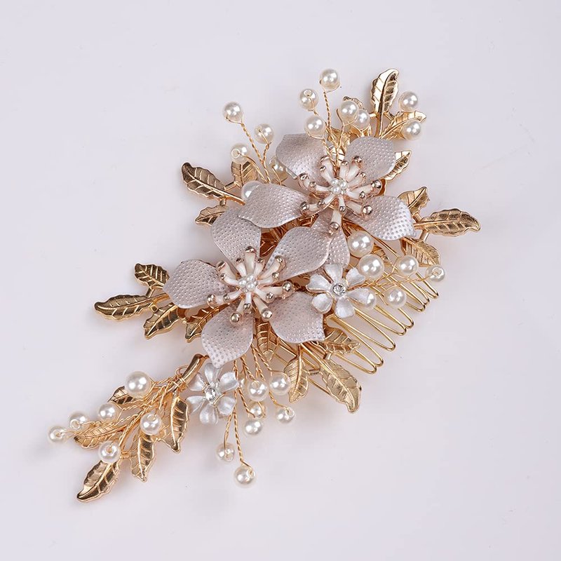 - ✿Wedding gold leaf pearl hair comb for wedding using insensitive metal.Wearing it,You are the charming brides in your wedding.