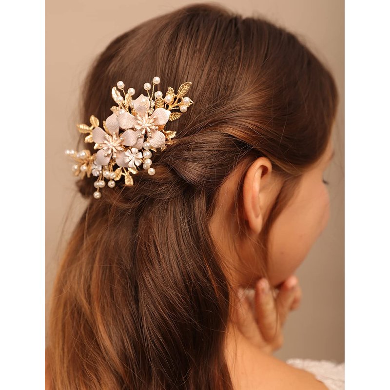 YERTTER Gold Pearl Hair Comb Style 2 for Wedding Brides Bridesmaid Flower Girl Prom Birthday Party