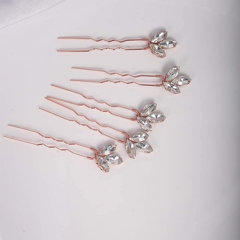YERTTER Wedding Hair Pins Set of 5 Hair Pins Rhinestones Bridal Clip Accessories for Bride and Bridesmaids (Rose Gold)