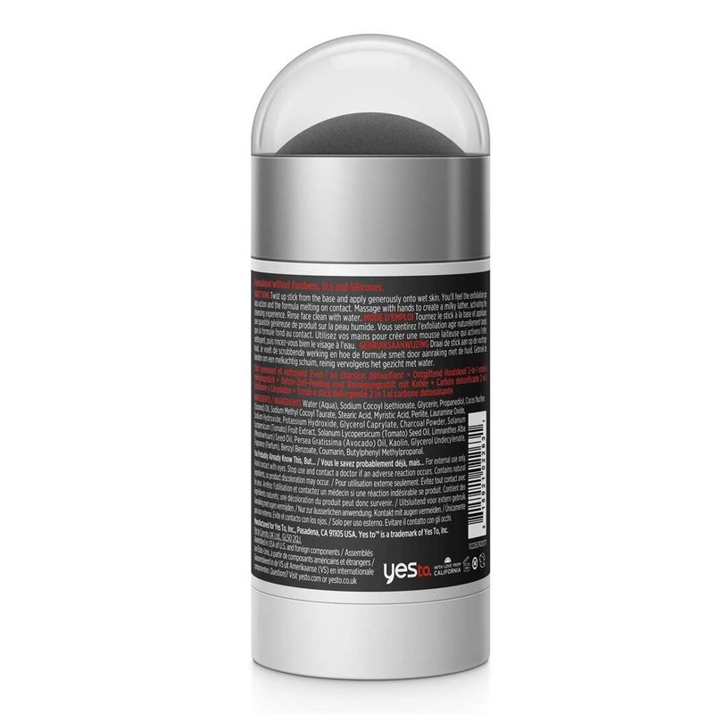 Yes To Tomatoes Clear Skin Detoxifying Charcoal 2 in 1 Face Scrub and Facial Cleanser Stick For Blemish Prone Skin, 95% Natural Ingredients, 2.5 Oz