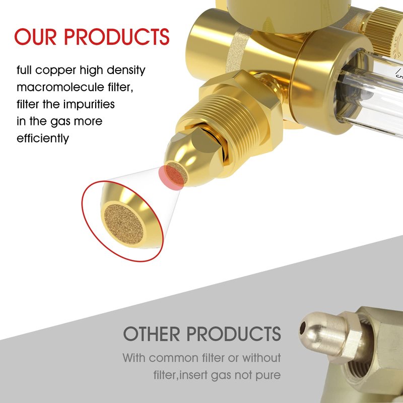 - Accurate Gas Flow Gague:The Square flow tube reads from 0 - 60 CFH, which is indicated by a ball which moves up and down in the flow tube.And has large 1 1/2" diameter pressure gauge which reads from 0 - 4000 PSI. Easy to read, accurate