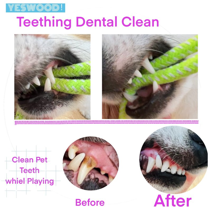 - 【HEALTH AND PLAY BENEFITS】 This ball on rope dog toy is great for easy dog teeth cleaning, naturally supporting your pup’s oral health - the fibers in the tug toss floss dogs’ teeth when they chew and play.