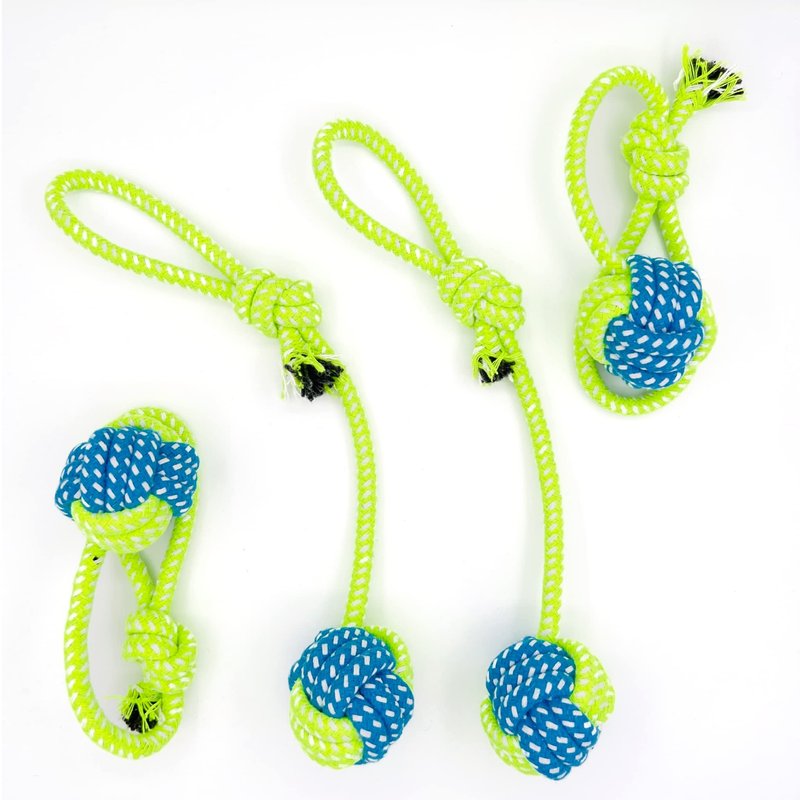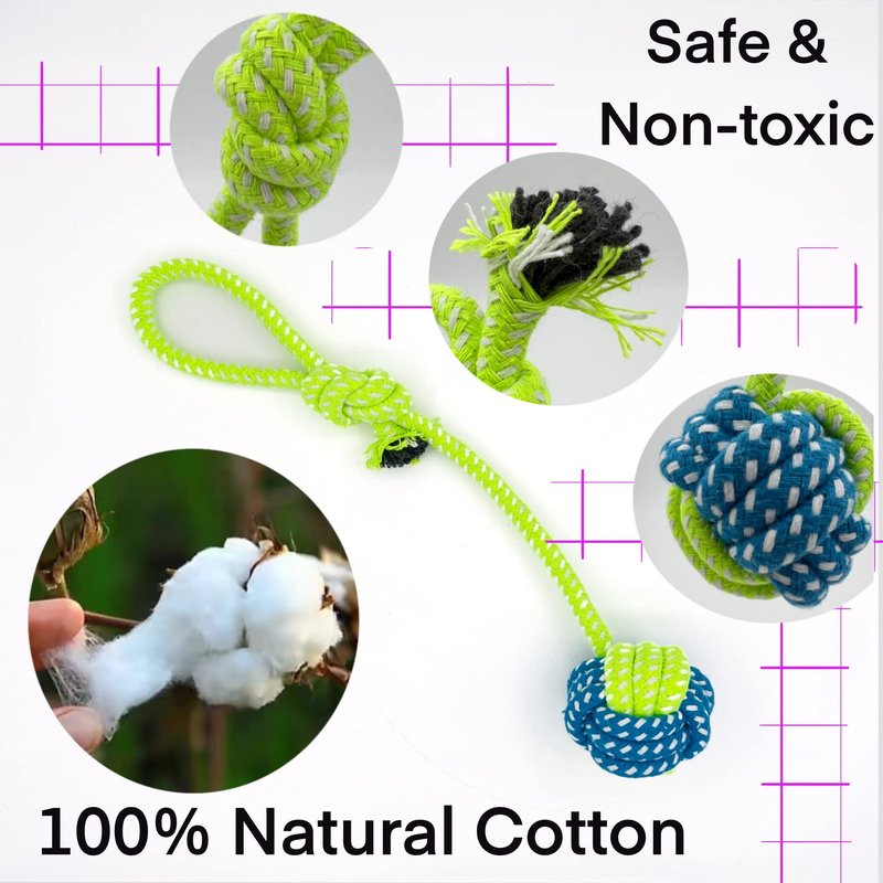 - 【SAFE AND NON-TOXIC】 Made from premium Natural Cotton-Poly yarns finished with sturdy knots,these yeswood!premium cotton rope toys are safe, durable and tough toys for dogs.It has a ball of knotted rope on one end of the toy and a knotted rope handle on the other end,both of which are hand-woven.