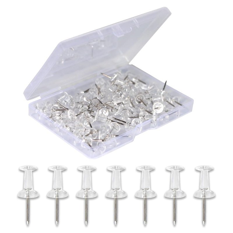 - šćGUARANTEED TO YOUć: The included clear container keeps the thumbtacks neatly stored and easily accessible, it keeps your desk organized. If these clear push pins have quality problems, please contact us in time, we will provide free return and exchange services.