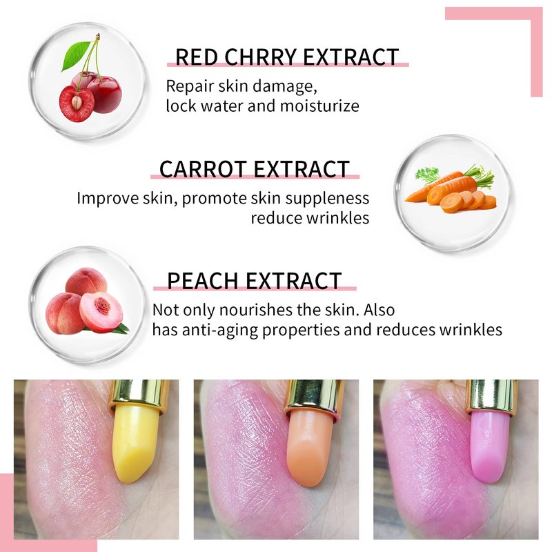 Yeweian Red Cherry Color Changing Lipstick, Natural Moisturizing Lip Gloss Korean Lip Balm Long Lasting Lip Care Labiales Magicos Nutritious Magic Lipstick For Women