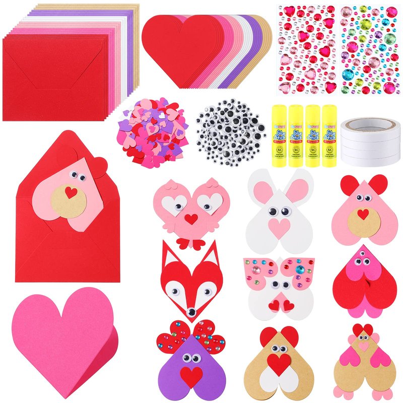 Yexiya 380 Pcs Valentine's Day DIY Craft Kit Valentine's Day Ornaments Decorations Paper Heart Cards with Googly Eyes Gem Sticker Envelopes for Kid Valentines Game Activity Party Supplies