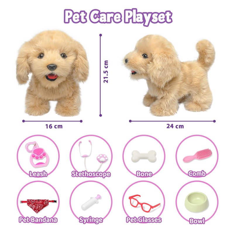 - Pet Care Set: More than just a playmate, this toy puppy comes equipped with vet tools, transforming playtime into an educational experience. It's an excellent way to introduce your child to the basics of pet care, instilling responsibility and compassion through play.