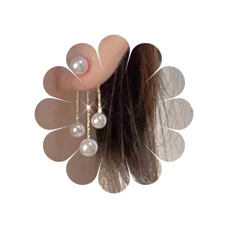 Yheakne Boho Pearl Drop Dangle Earrings Gold Pearl Ear Jacket Earrings Vintage Dangle Pearl Tassel Earrings Double Way Front Back Earrings Jewelry for Women Gifts