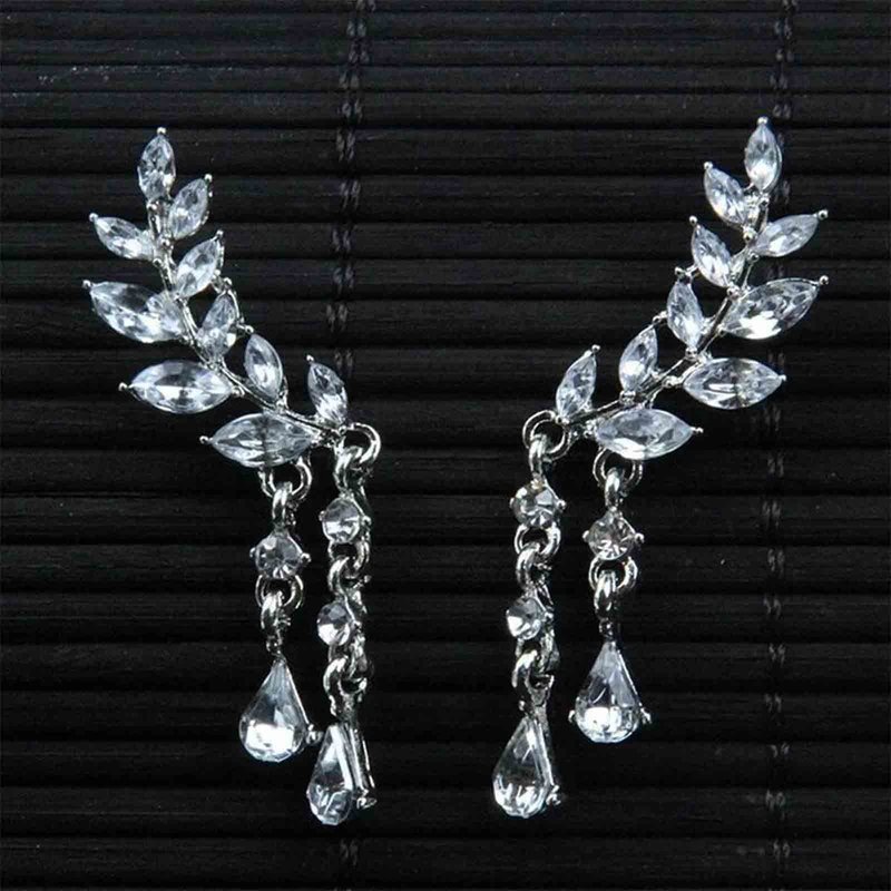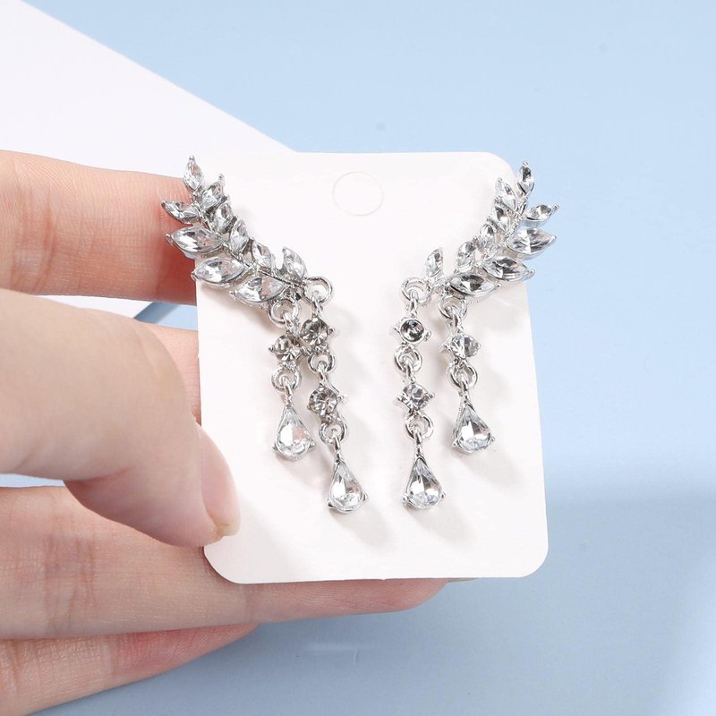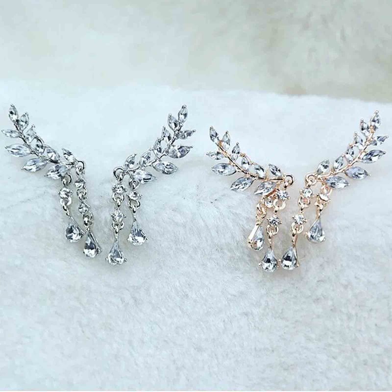 - Silver cz leaf earrings crawlers made of good quality alloy and crystal,comfortable to wear.