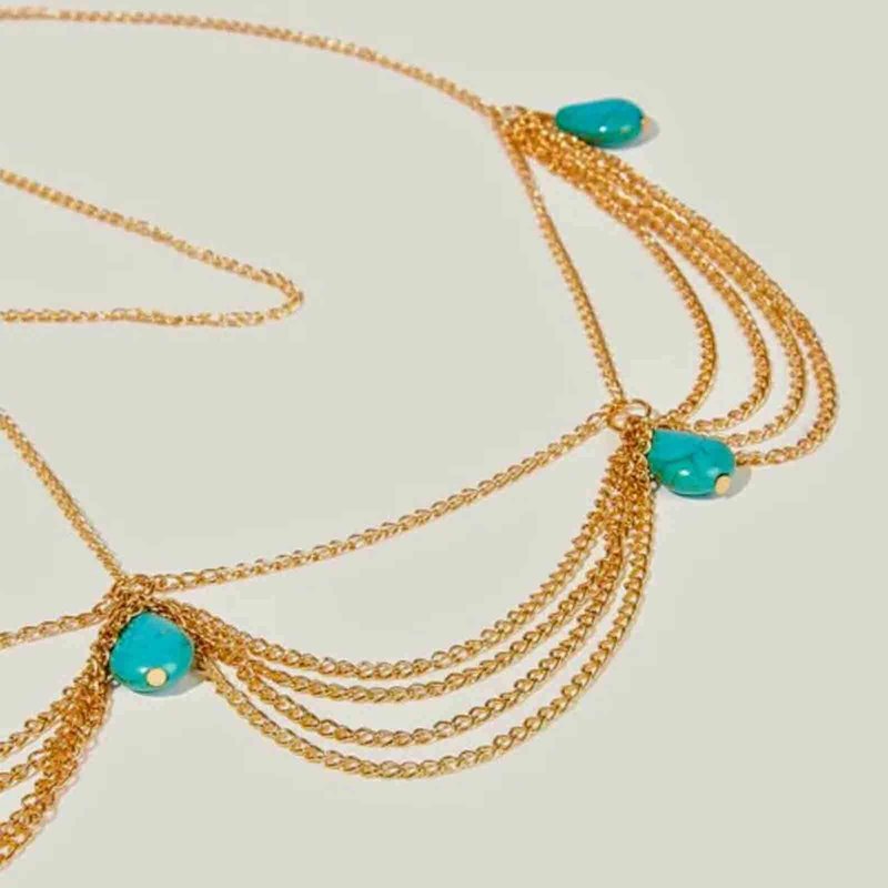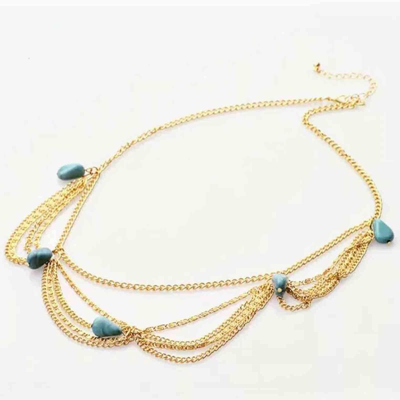 Yheakne Boho Turquoise Headband Gold Layered Tassel Head Chain Gypsy Hair Chain Festival Wedding Headpieces Decorative Headdress Hair Accessories for Women and Teen Girls Gifts