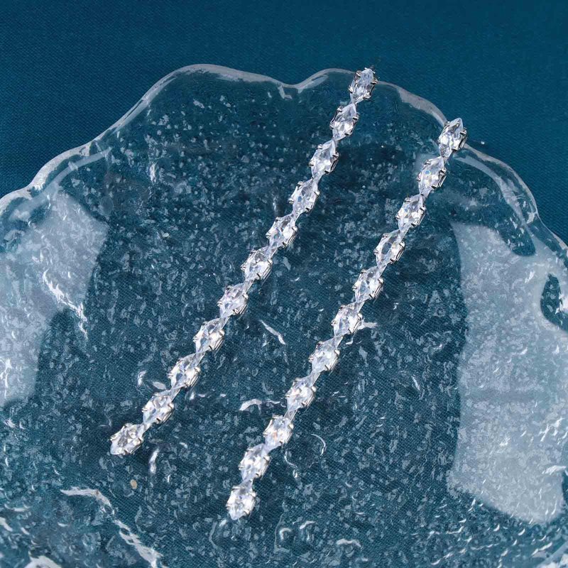 - Silver Long Cz linear Earrings with real images,suits for most people.
