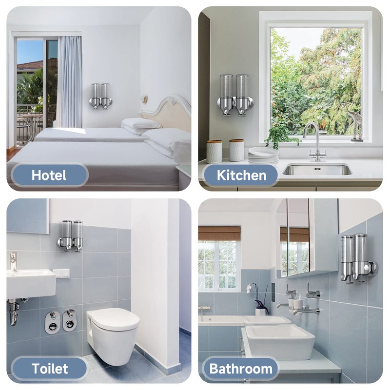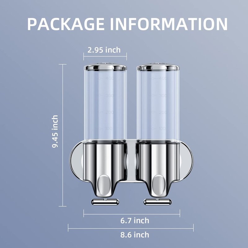 - Non-Drilled Wall Installation Design and Multiple Installation Methods: easy to install. You can use non-marking adhesive to install it on the wall (note: clean the wall before installation, and wait 24 hours before adding shampoo after installation) or use screws to install it, which is stable and not easy to fall off, and enhance the bathroom space. An effective alternative to messy detergent bottles.