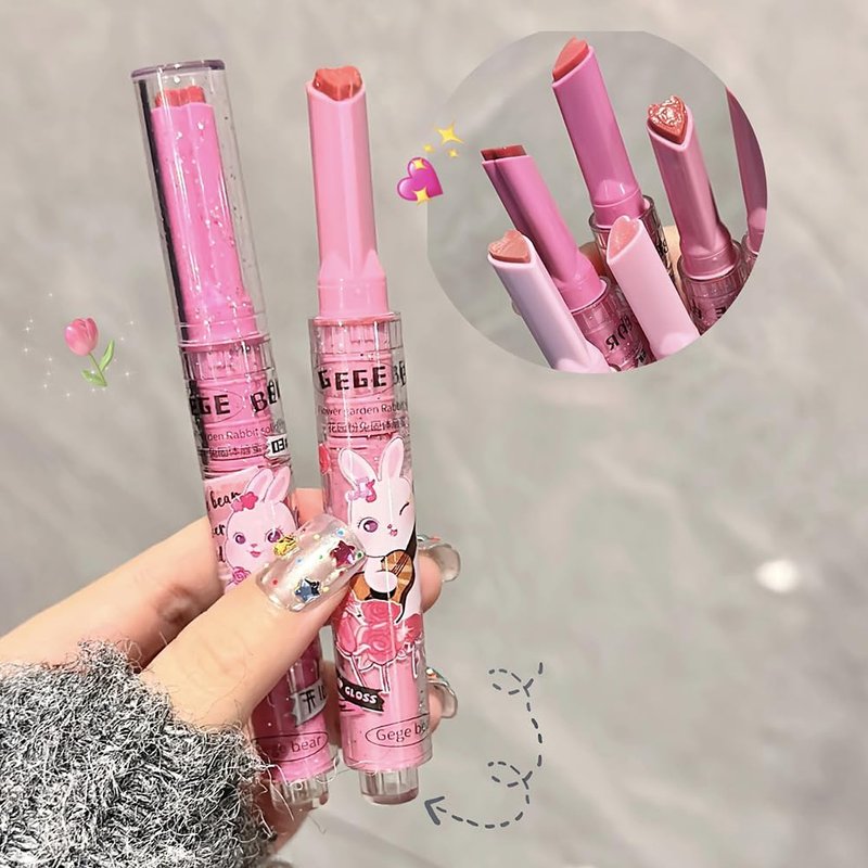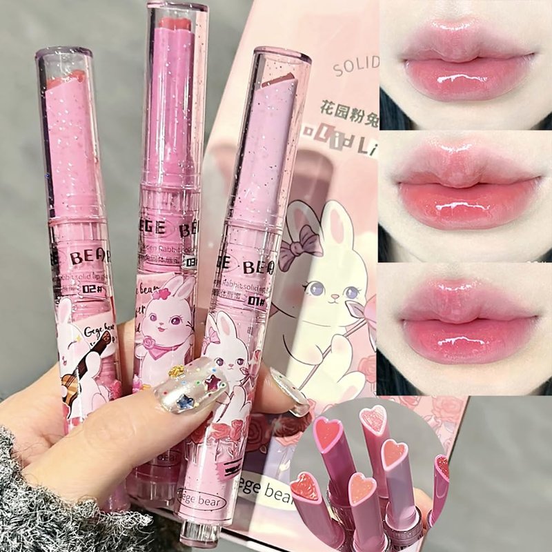 - 【Heart Jelly Lipstick】Garden Pink Rabbit Series--3 colors nourishing mirror hydrating jelly love lipstick, floral honey solid lip nectar lipstick, giving your lips a pure colour.nourishing and non-sticky, jelly-like smooth mirror effect, so that the overall makeup more pure little girls.