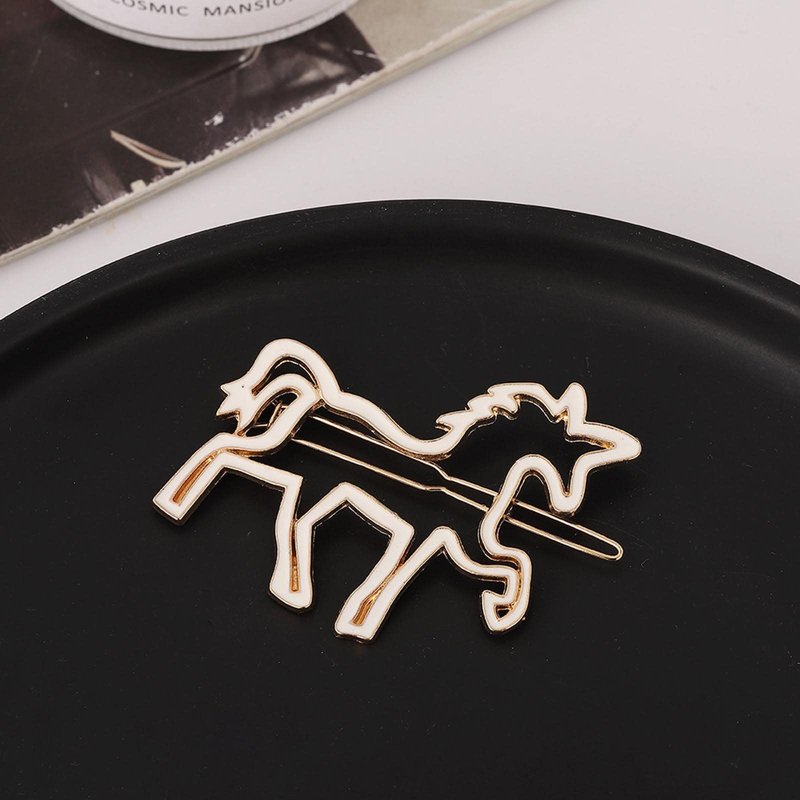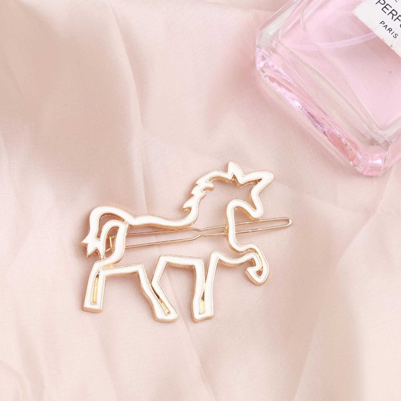 YienDoo Unicorns Hair Clips Barrette Gold Cute Pony Hairpins White Border Barrette Fashion Hollow Headpieces Geometric Metal Head Clip Bobby Pin Ponytail Holder Hair Accessories for Women Girls