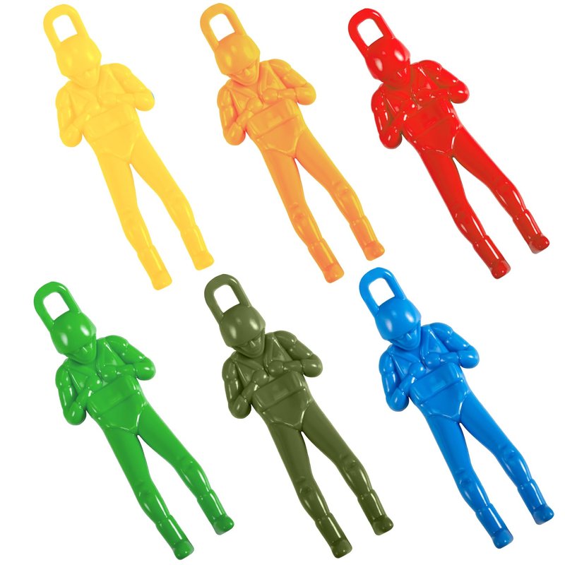 - Package includeds: You will get 6 pieces of parachute toys in different colors including orange, green, red, blue, yellow, camouflage. Enough quantity for your children to play with.