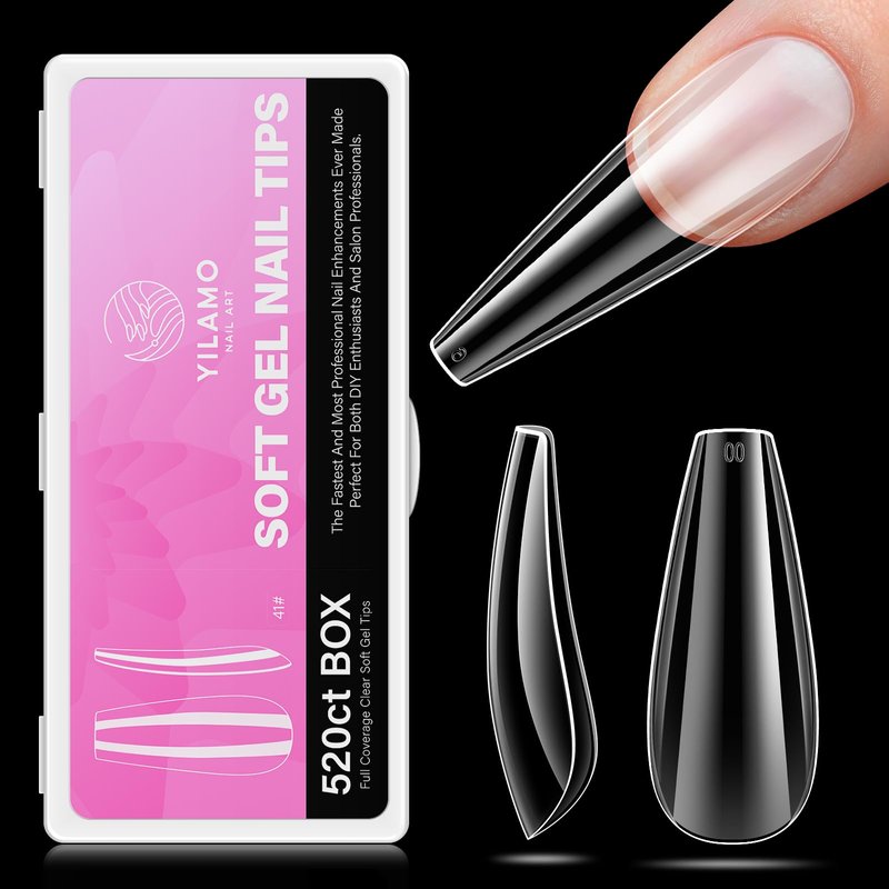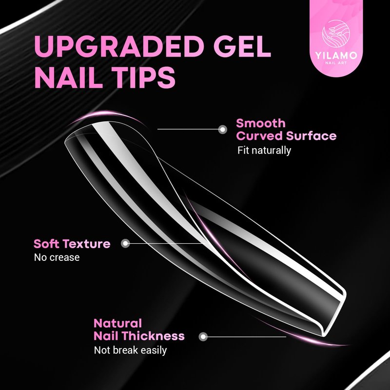 - [Professional Nails Tips]: YILAMO's coffin gel x nail tips are made of high quality soft gel jelly material, which is thinner, lighter, more durable and better nail coverage. The clear nail tips can be used with nail polish, dip powder, acrylic powder to create a salon manicure