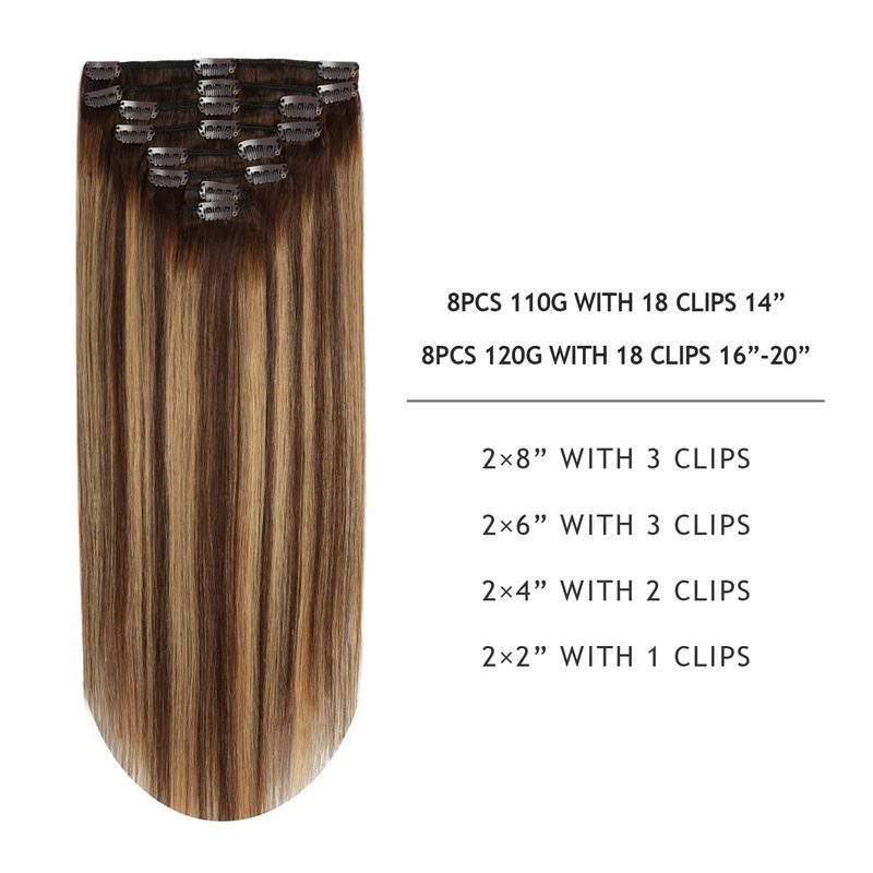 - 【YILITE Clip in Human Hair Extension Specification】16inch, 8pcs, 120g/set, 18 clips, net weight: 105g (without clip), each clip uses a silicone back clip, will not harm your hair, thin hair recommends buying 2 sets, in addition, each hair extensions clip ins has Exquisite gifts are given together.