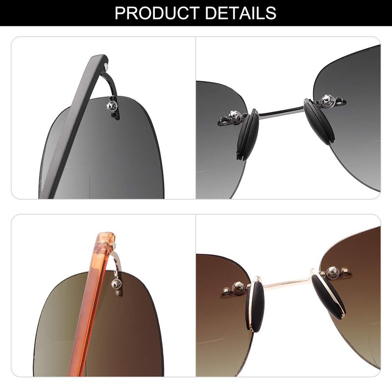 - Skin Friendly Material - The bifocal sun reader is designed for comfortable daily wear with durable, lightweight, high quality frames. This casual frame and high quality silicone nose pads make it very comfortable to wear. and the lenses’ light transmittance is very good.Rimless design will keep you looking professional and fashionable while working or reading.