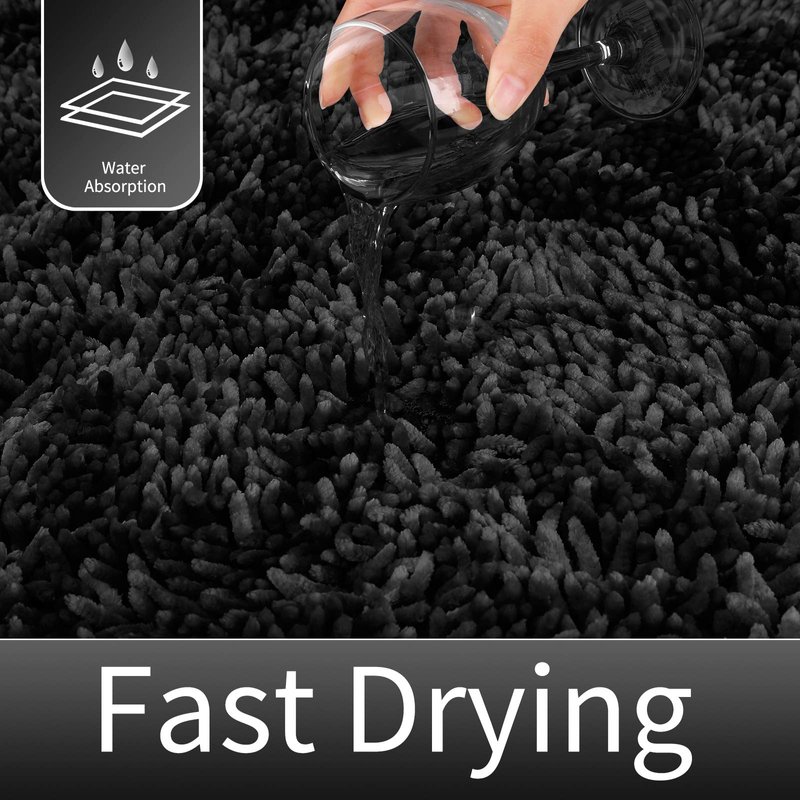 Yimobra Luxury Chenille Bathroom Rug Non-Slip, Extra Soft and Comfortable Bath Mat, Shaggy Rugs Plush Carpet Floor Mats, Super Absorbent and Thick, Machine Washable, 31.5 x 19.8 Inches, Black