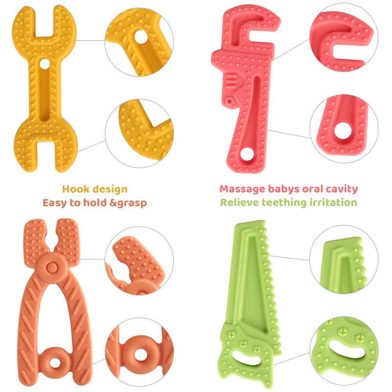 The newborn baby teethers are shaped into hand tool appearances, and you can speak the names of these hand tools while your babies are playing with them, in an effort to develop their cognitive abilities day by day.