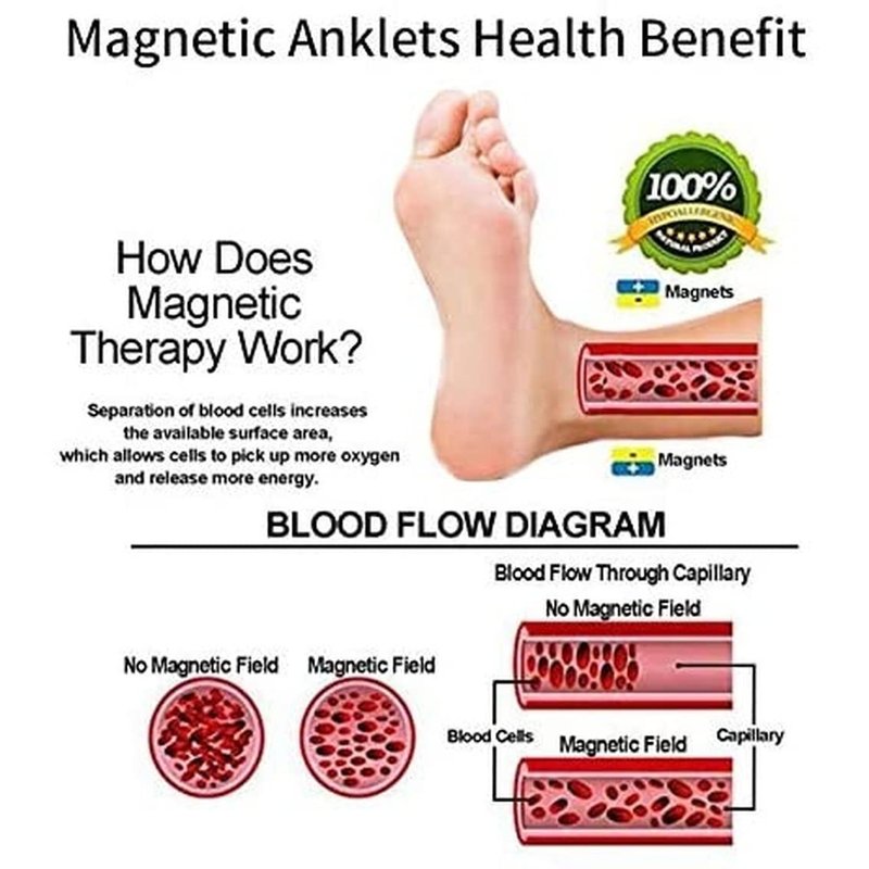 - Magnetic Bracelets/Anklet: with Magnets, Help with Reduce fatigue & muscle tension. Improve blood circulation, energy, balance, and sleep. Natural healing aches for carpal tunnel, finger, arm, wrist and other sports joints.