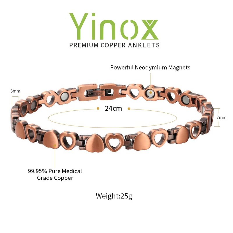 YINOX Copper Ankle Bracelet for Women, Magnetic Therapy Anklet for Arthritis Pain Relief with 12 Magnets Jewelry Gift