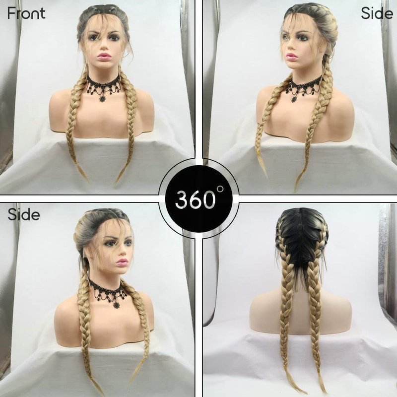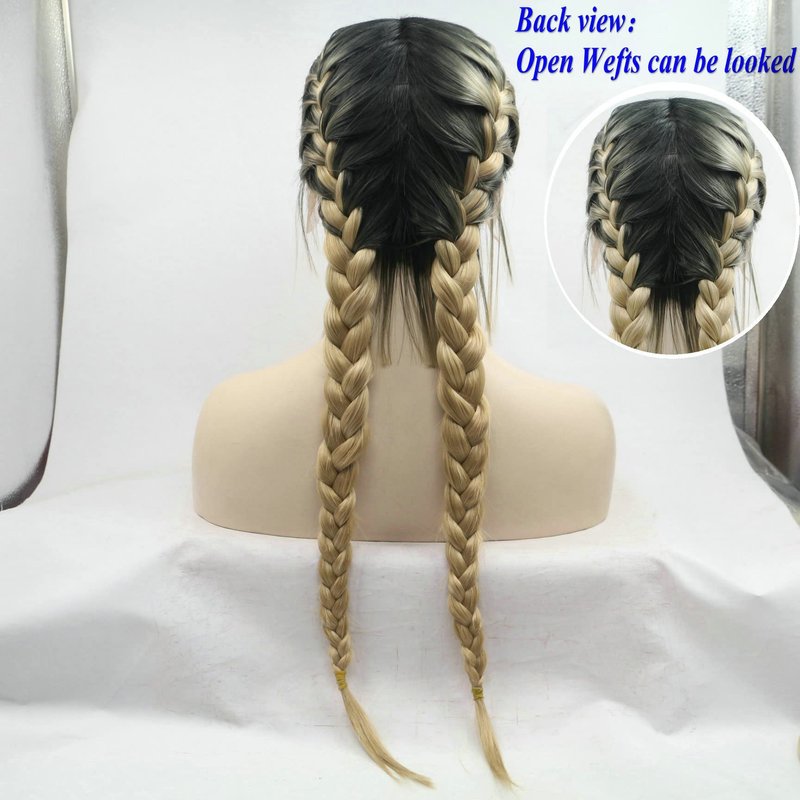 - 【Synthetic Wig Features】: This Ombre Blonde Double Braids Synthetic Lace Front Wigs Could Be Heated within 320F, When Heated, Please Run Through the Hair Quick in Case of Damage the Hair