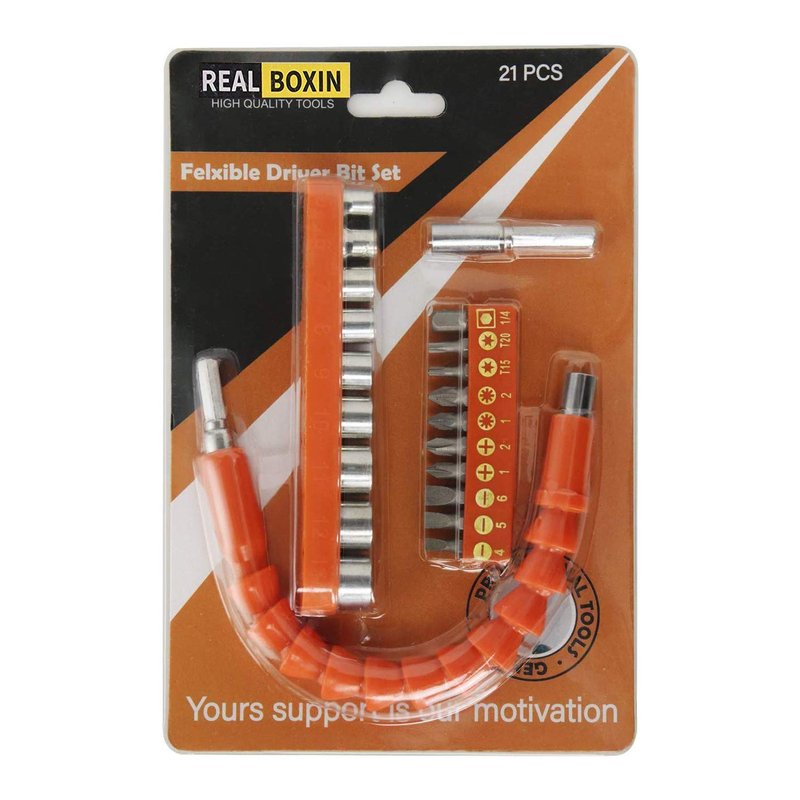 YIOYULEN Flexible Drill Bit Extension, 11.6inch Bendable Drill Bit Extension, Universal 1/4 Flexible Extension for Drill Adaptor Hex Set Orange (21 PCS)