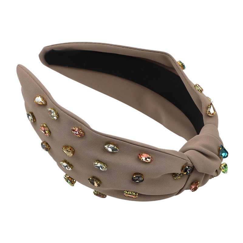 YISSION 1PC Crystal Knotted Headband for Women Non Slip Rhinestone Headband Coffee Head Band Fashion Wide Headbands Hair Accessories for Women Girls