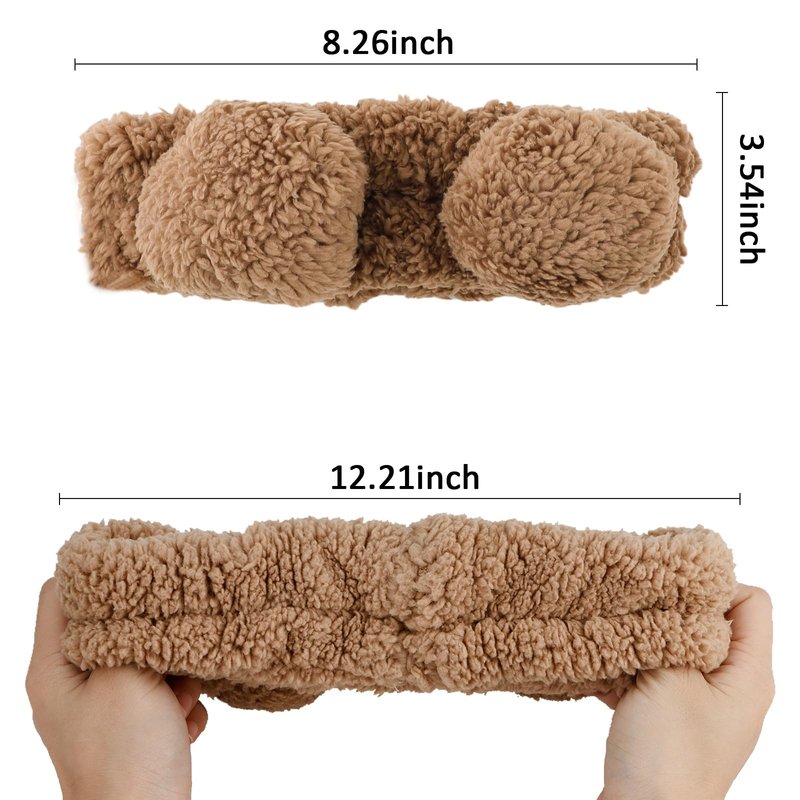 YISSION 2PCS Bear Ears Spa Headband No Slip Head Band for Face Wash Makeup Skincare Facial Headband Elastic Hair Band Carol Fleece Headbands for Women Girls (Brown Coffee)