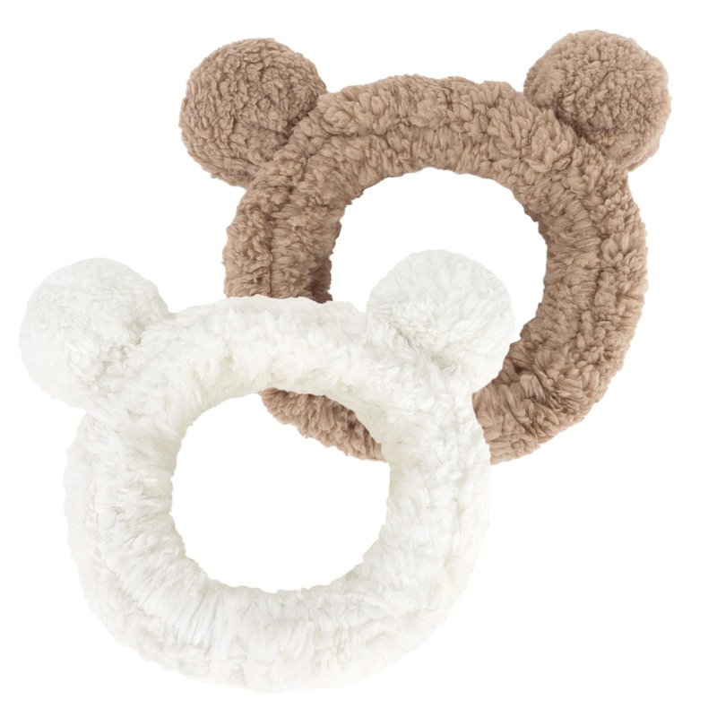 YISSION 2PCS Bear Ears Spa Headband No Slip Head Band for Face Wash Makeup Skincare Facial Headband Elastic Hair Band Carol Fleece Headbands for Women Girls (White Brown)