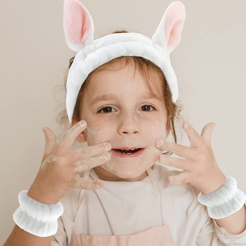 - Package: 2pcs bunny ears headbands and 4pcs wristbands for washing face, spa, skincare, making up and so on. The set is strong practicality and good-looking, making your life more sophisticated.