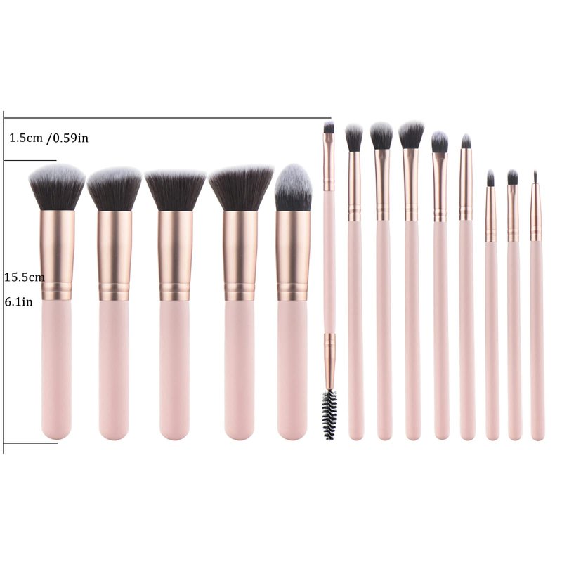 YJ-Anyue Makeup Brushes Pink wooden Makeup Brushes Set Premium Synthetic Foundation Brushes Blending Face Powder Eye Shadow Concealer Make Up Brushes Tool (14PCS Pink)
