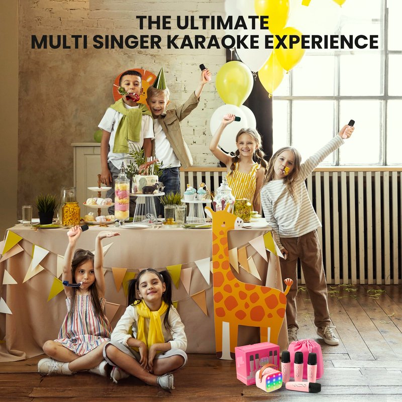 YLL Mini Karaoke Machine for Kids Adults: Portable Loud Speaker with 4 Wireless Microphones - Christmas Birthday Party Gifts for Girls 3,4,5,6,7,8+ Year Old Toys(Pink-4 Mics)