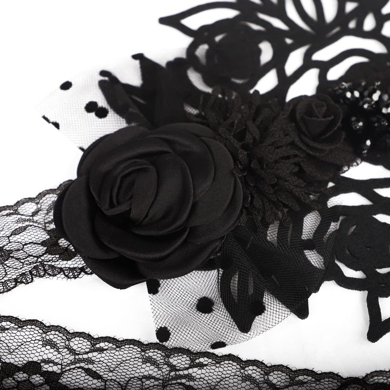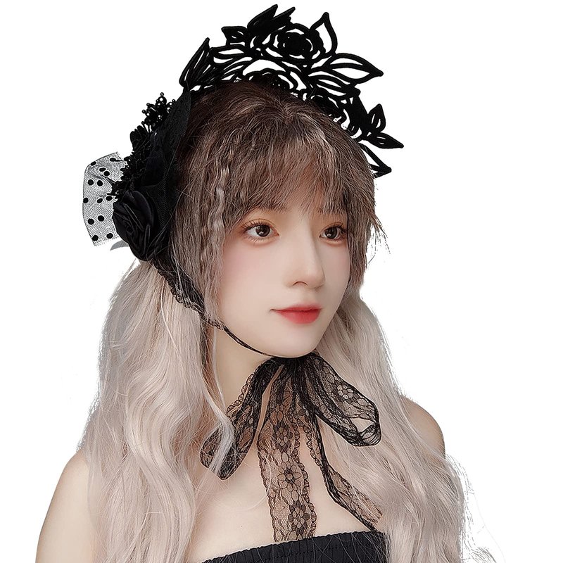 •Gothic headbands with lace and realistic flowers add a sweet atmosphere.