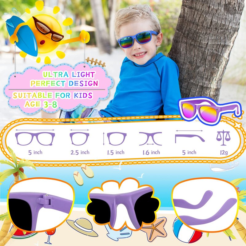 - HIGH QUALITY AND SAFETY: The kids party sunglasses are made of comfortable and sturdy polypropylene material, durable and light in weight. Our kids summer sunglasses with high-quality lenses, ensuring that children feel comfortable wearing them without any pressure or discomfort.Will bring a great experience for kids in party activities
