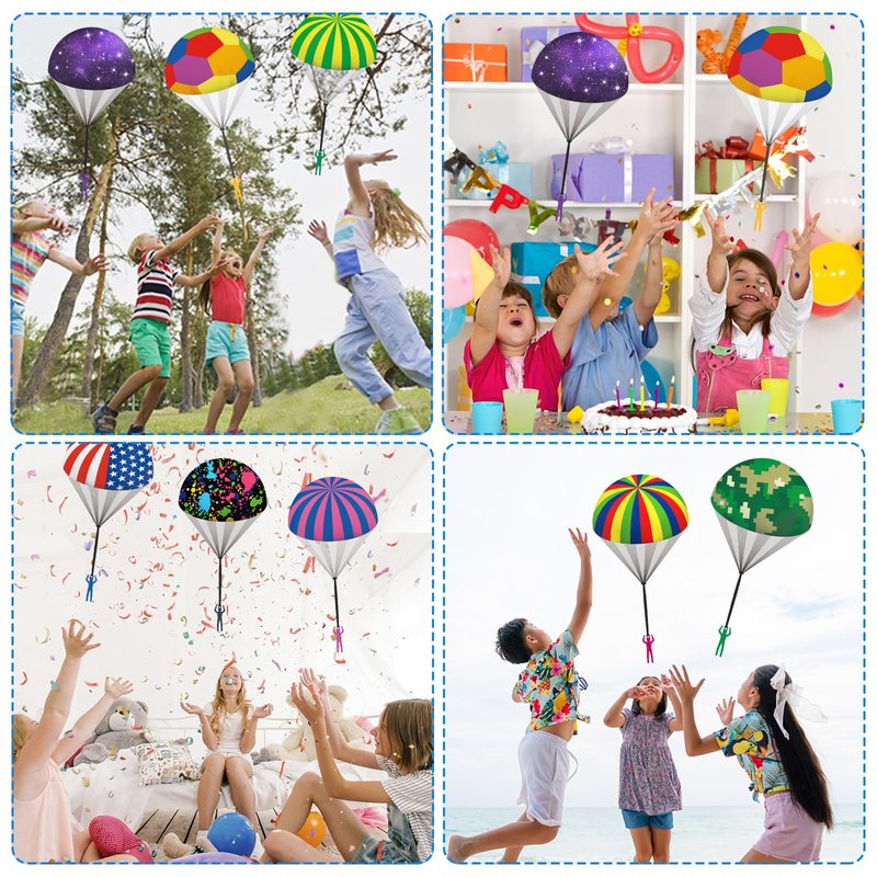 - ✅Great Party Favors for Kids-A variety of parachute toys make perfect party favors for Easter basket stuffers, Christmas stocking stuffers, Valentine's Day, birthdays and a variety of other holidays. As a gift,give it to your kids and family,share these outdoor toys with them that will make the party lively and fun. Take them outdoors, away from screens, and host group games and competitions to promote physical and mental health and release stress!
